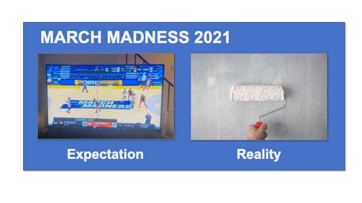 A classic problem in any relationship – whether in business or home – what we expect versus reality. When I saw the start of the NCAA Tournament, I assumed I would spend the the weekend propped up on the couch catching up on some rest and zoning-out watching college basketball. In reality, I needed to tackle a chore that was on both of our “To Do” lists.