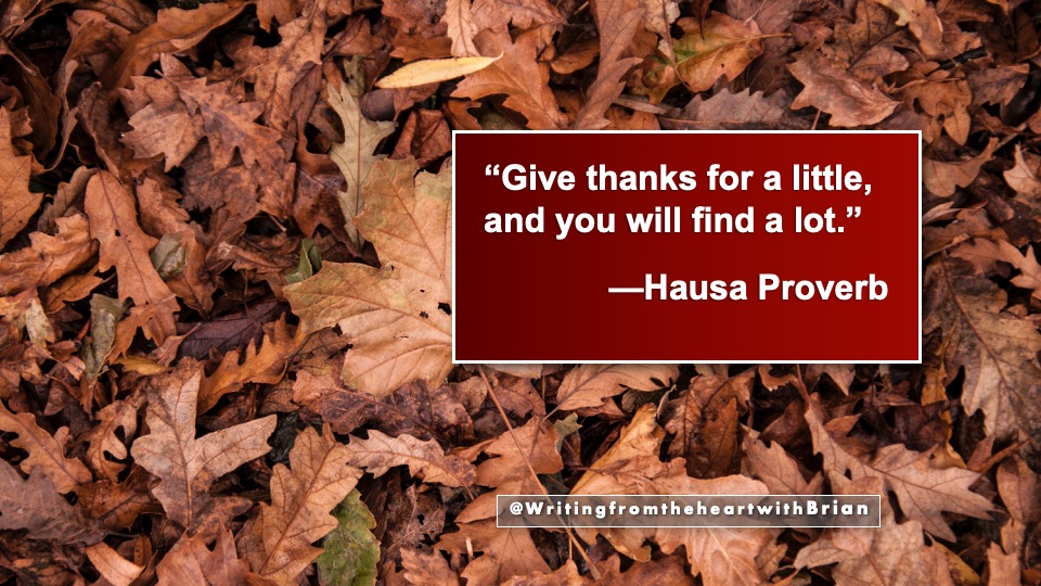 Beautiful, Brian. I really like the Hausa Proverb. Grateful for you!
