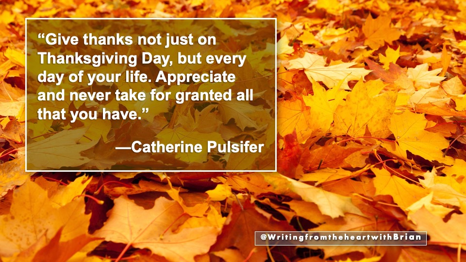 Thank you for a lovely post and message, Brian. I feel just the same about being thankful. It’s not something we should only do one day a year for those who celebrate Thanksgiving, but something that should be practised every day. I love the quotes you have used. I know, however low I may be feeling, as soon as I see the smiling faces of my two little grandchildren, it lights up my world. I am so grateful for them and for so many other things in my life. Hope your weekend has been a good one.