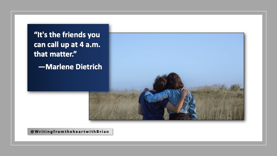 The older I get, the more I realize how important friends are. We can’t have too many friends.