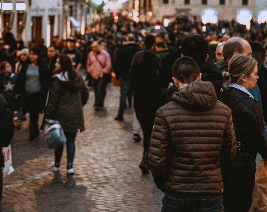 My wife and I went to see the touring version of the Broadway show Come From Away. We had a wonderful time, but when the show was over, the group of people walking in front of us walked four or five to a row, taking up much of the sidewalk, and were heavily involved in their own, loud conversation. One woman, not looking where she was going, ran into me, another into my wife.
