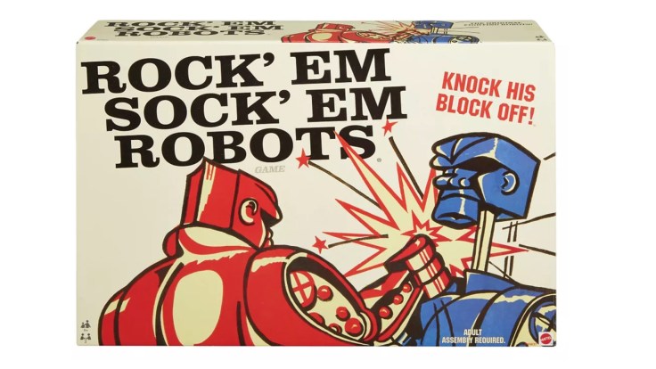 The one house I didn’t mind staying over, though, was my friend Noah’s house. I loved staying over there because he had Rock ‘Em, Sock ‘Em Robot, a two-player action toy with two dueling robot boxers, Red Rocker and Blue Bomber. The goal of the game was to push down on the controller buttons fast enough and often enough to knock the opposing robot’s head up and off the shoulders.