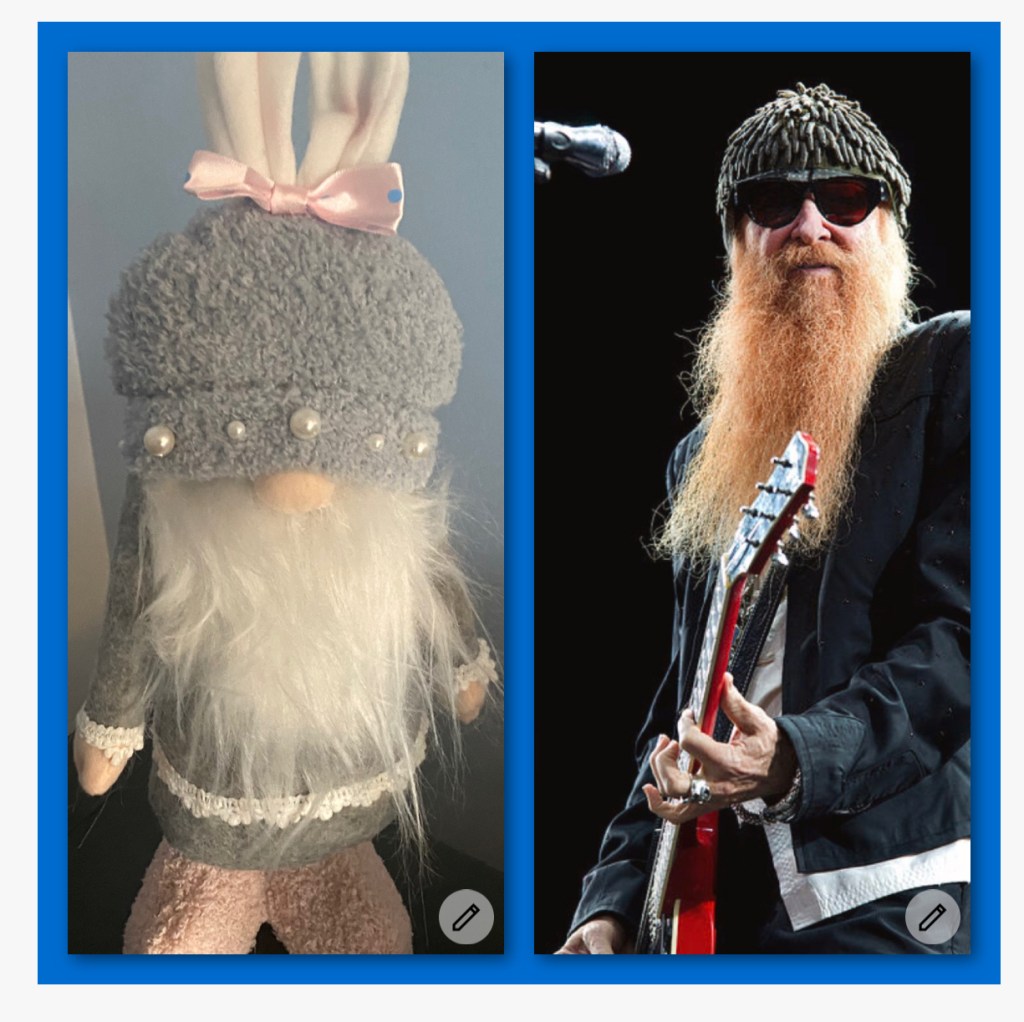When she decorated the house, she put out her Bunny Rabbit Gnome in a special place. When I looked at the Ghome, though, I couldn’t figure out who wore the beard and cap better? The Gnome or ZZ Top’s Billy Gibbons. Hmm, decisions, decisions. Who do you think?