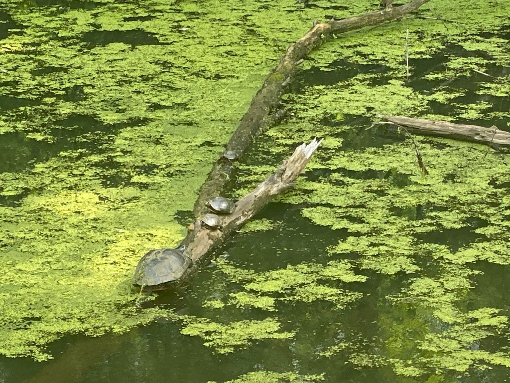 It’s a trail that I used to run, now mainly walk. The turtles are funny. It’s an old canal that gets pretty swampy. Looks kind of gross to me … but There always seem to be a bunch of turtles hanging out. Must be great habitat for them! 🐢🐢🎉🎉🎉