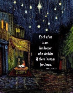 “And she gave birth to her firstborn son and wrapped him in swaddling cloths and laid him in a manger, because there was no place for them in the inn.”–Luke 2:7